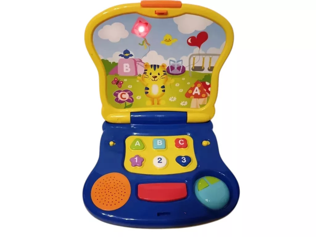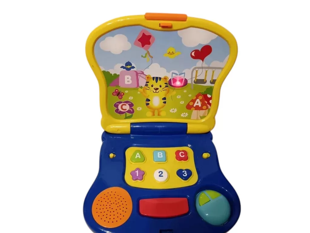 A laptop 22×19 cm-es, felnyitható kialakítású, kifejezetten kisgyerekek kezéhez tervezve. A nagy, színes gombok megnyomásra fény- és hangjelzésekkel reagálnak, angol nyelvű dalokkal, egyszerű szavakkal, betűkkel és számokkal. Segíti az ok–okozati összefüggések megértését, a figyelem fejlődését és az idegen nyelvvel való játékos ismerkedést.