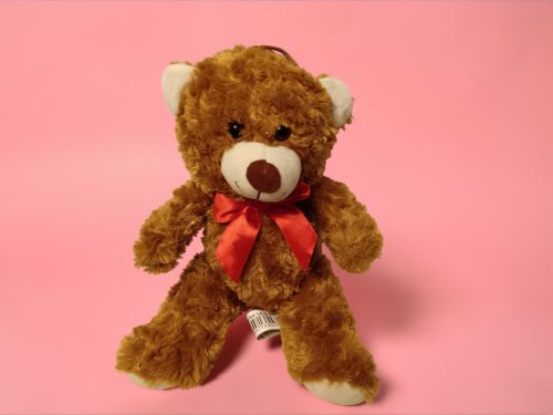 Barna plüss mackó piros masnival, 28 cm – használt, újszerű állapotban Válogatott és ellenőrzött darab. Ajándéknak is tökéletes.