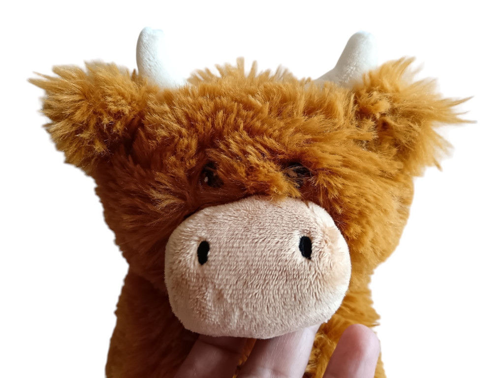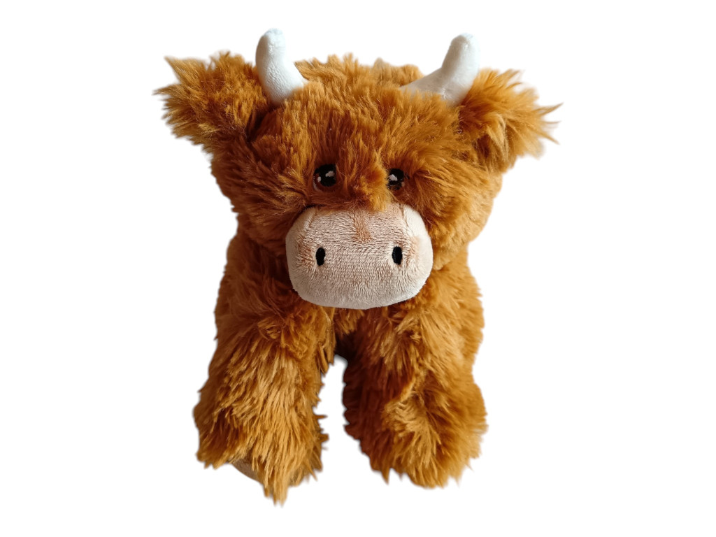 Ez a bika plüssfigura kb. 26 cm-es, kellemes tapintású, hosszabb szőrű anyagból készült. Állapota újszerű, a varrások rendben vannak, a szőr szép, dús, nem kopott, nem foltos. A kis szarvak stabilak, az arc kedves és barátságos – igazi szerethető karakter. Méretéből adódóan ideális kézbe való, így könnyen válhat egy gyerek kedvenc ölelgetős társává vagy akár egy nyugodt esti pihenés részesévé.