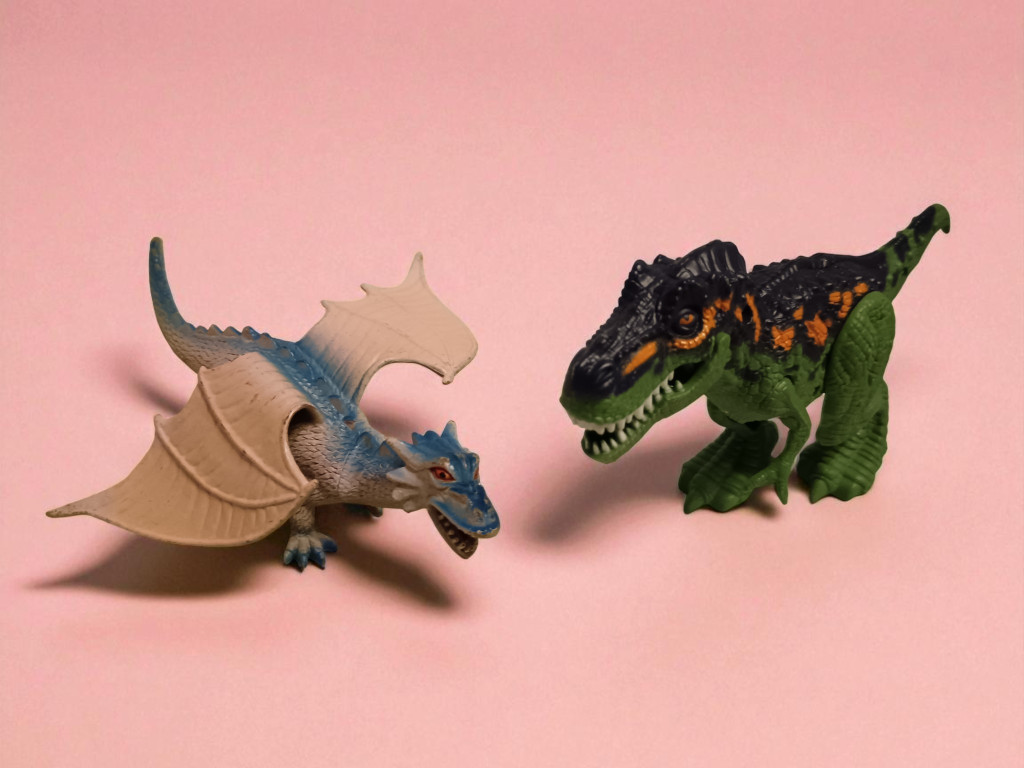 Ez a dinós játékfigura csomag többféle méretű és színű dinoszauruszt tartalmaz, köztük T-Rexet, sárkányt és számos kisebb őslényt. A figurák 7–14 cm közöttiek, a két legnagyobb (Zúzó és Villám) kb. 12–14 cm magasak. Az állapotuk jó, apró használati nyomokkal, de minden figura ép, masszív és játékra teljesen alkalmas.