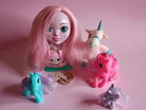 Fésülhető babafej pónikkal és unikornissal – használt, jó állapotban játékcsomag (6db-os szett) (B1)