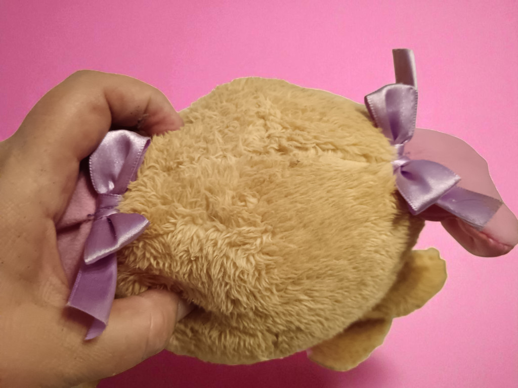 A játék használt, jó állapotban van, szerkezete ép, minden gombja érzékenyen reagál. Fontos megjegyezni, hogy a feje teteje piszkos, nem volt tisztítva – ez a fotókon is jól látszik. Egyébként a plüss kellemes tapintású, puha és bolyhos, a ruhácskája ép.