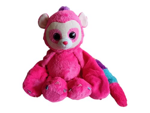 Ez a Keel Toys Huggems Skye majom plüssfigura kb. 30 cm-es méretével igazán ölelhető társ. Élénk rózsaszín színe, vidám, szivárványos farkincája és jellegzetes nagy, csillogó szemei azonnal magukra vonják a figyelmet. Újszerű állapotú, a plüss tiszta hatású, a varrások stabilak, kopás vagy szakadás nem látható rajta. A tappancsokon és részleteken apró díszítések teszik még különlegesebbé.