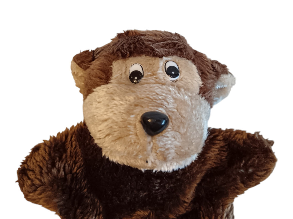 Ez a kézbáb plüss majom kb. 20 cm-es, puha tapintású, barátságos megjelenésű játék, amely ideális szerepjátékhoz, meséléshez vagy akár esti, nyugodtabb játékhoz is. Állapota jó, a plüss szép, nem szakadt, nem foltos, enyhe használati nyomok előfordulhatnak. A játék elemes funkcióval készült, azonban az elemtartó be van varrva, így jelenleg nem működik – emiatt inkább klasszikus, manuális bábozásra használható.