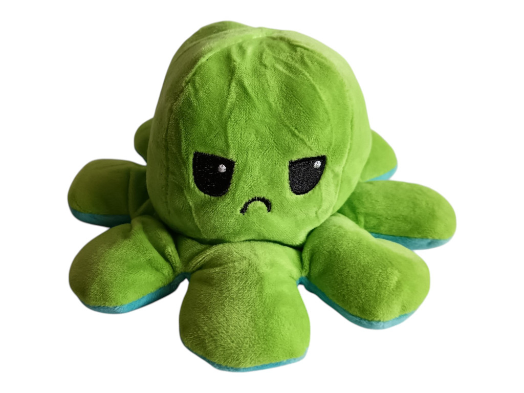 Mérete 18 cm, így ideális kisebb plüss játék, amit akár utazásra is magatokkal vihettek. Ez a kifordítható polip plüss nemcsak játék, hanem egy egyszerű érzelemkifejező eszköz is: segíthet a gyerekeknek megmutatni, hogyan érzik magukat, akár szó nélkül is. Egy ilyen puha plüss figura sokszor válik a mindennapok kis társává – játék közben és nyugodt pillanatokban is.