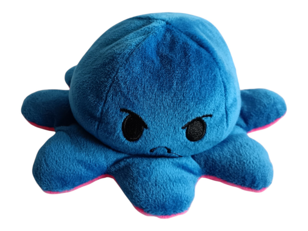 Mérete 18 cm, így ideális kisebb plüss játék, amit akár utazásra is magatokkal vihettek. Ez a kifordítható polip plüss nemcsak játék, hanem egy egyszerű érzelemkifejező eszköz is: segíthet a gyerekeknek megmutatni, hogyan érzik magukat, akár szó nélkül is. Egy ilyen puha plüss figura sokszor válik a mindennapok kis társává – játék közben és nyugodt pillanatokban is.