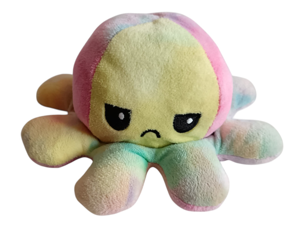 Mérete 18 cm, így ideális kisebb plüss játék, amit akár utazásra is magatokkal vihettek. Ez a kifordítható polip plüss nemcsak játék, hanem egy egyszerű érzelemkifejező eszköz is: segíthet a gyerekeknek megmutatni, hogyan érzik magukat, akár szó nélkül is. Egy ilyen puha plüss figura sokszor válik a mindennapok kis társává – játék közben és nyugodt pillanatokban is.