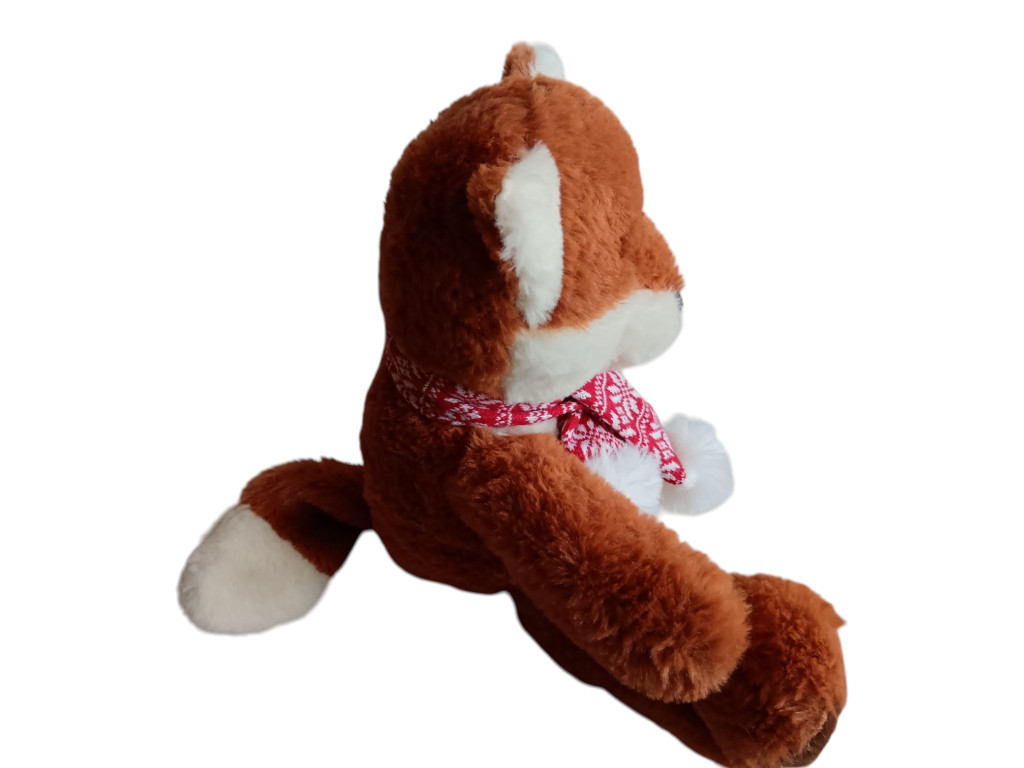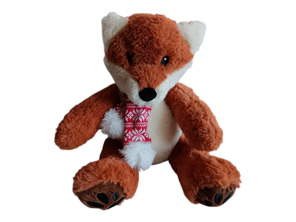 Rudi egy igazi kis téli hangulatú róka, aki mintha egy havas erdőből érkezett volna egyenesen hozzád. Puha, meleg barna bundája és a nyakában lévő piros, mintás sál azonnal meghitt, otthonos érzést ad. Nem csak játék, hanem egy kis hangulatdarab is, ami már első pillantásra mosolyt csal az arcokra.