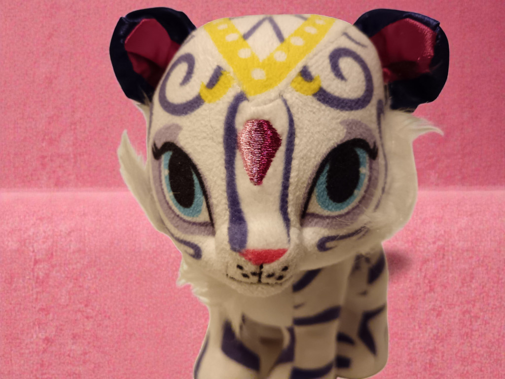 Ez a 16 cm-es Nahal tigris plüss a népszerű Shimmer és Shine meséből ismert karakter. Hivatalos, licencelt Nickelodeon termék, címkéje ép. Jó állapotú darab: bundája szép, színei élénkek, hímzett arcrészei épek, formája stabil. A selymes fülbelső és a díszített homlokrész különlegessé teszi megjelenését. Kézzel válogatott és gondosan ellenőrzött plüss, amely új gazdáját várja.