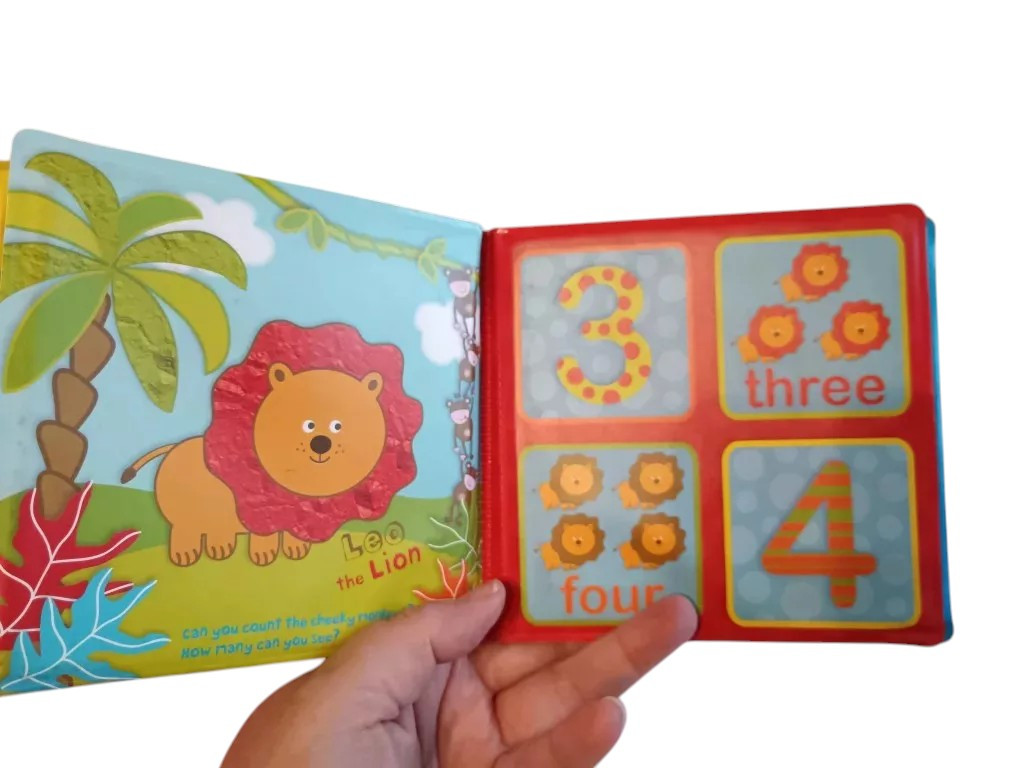 Van, amikor a tanulás nem asztalhoz ülve kezdődik, hanem egy meleg fürdőben, ahol a víz halk csobbanása mellett színes állatkák és barátságos számok bukkannak fel. A Numbers in the Jungle pancsikönyv pontosan ilyen: egy kis dzsungel, ahol a számok nem feladatok, hanem játékos kalandtársak. A zsiráfok, oroszlánok és vidám minták segítenek abban, hogy a számolás természetesen, örömmel épüljön be a mindennapokba.