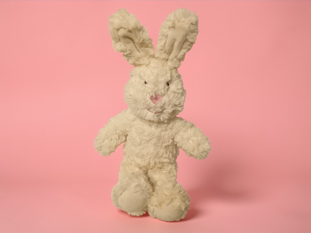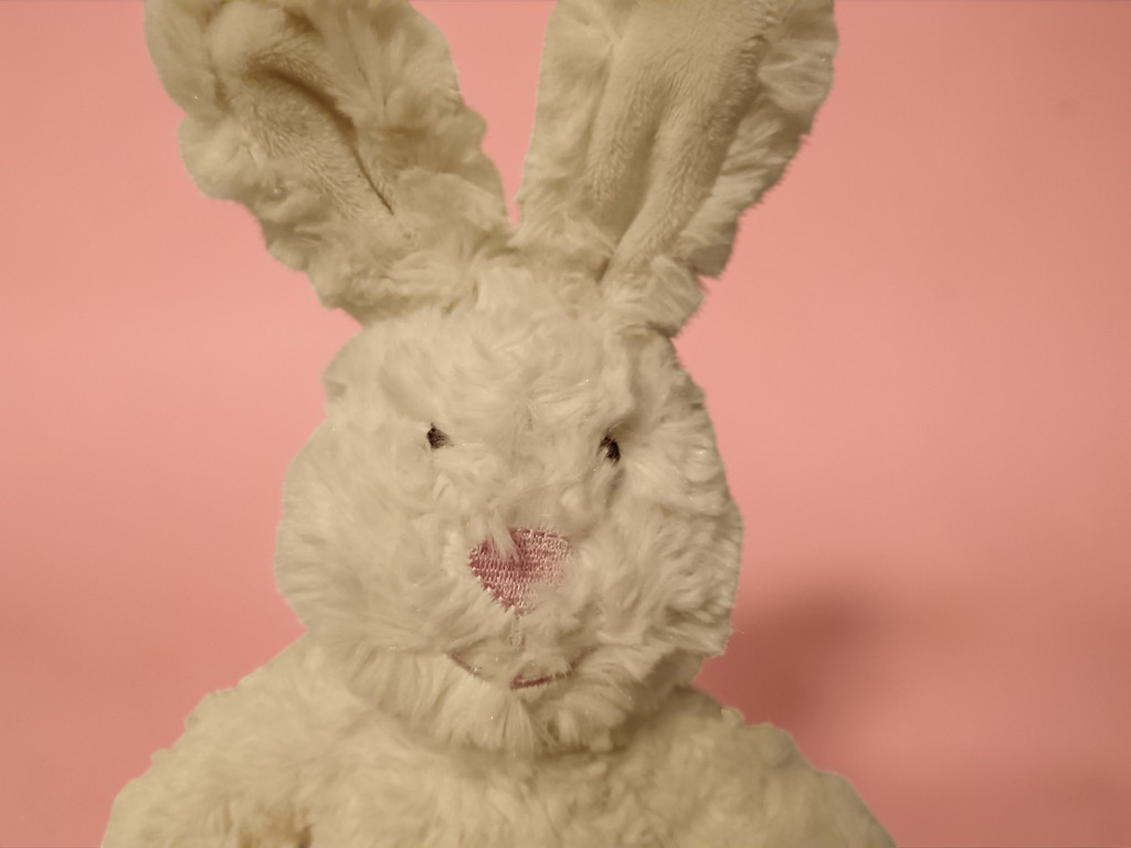 Ez a puha, krémszínű Tchibo (TCM) plüss nyuszi igazi ölelni való társ. Hosszú, lágy tapintású fülei, rózsaszín hímzett orra és kedves, visszafogott arckifejezése nyugodt, meghitt hangulatot áraszt. Az a fajta plüss, amely csendesen ott van egy gyermek mellett – akár esti mesénél, akár utazáskor.