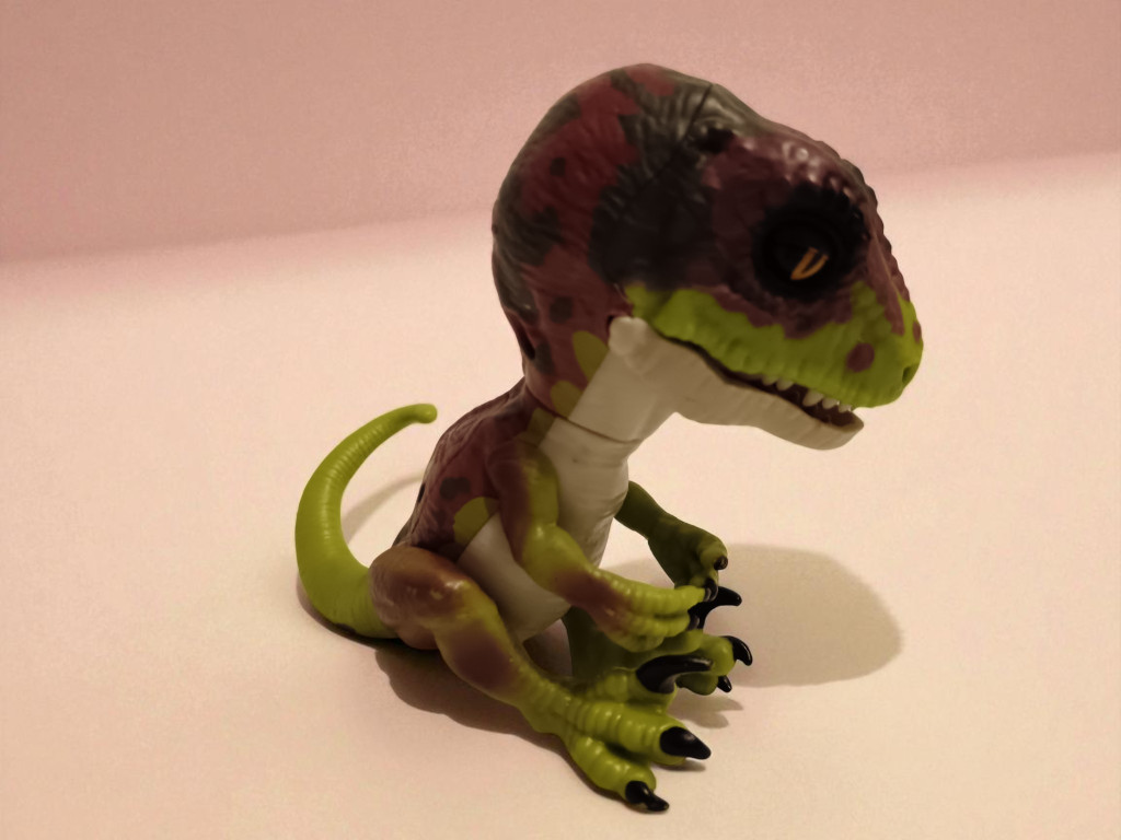 Ez a WowWee interaktív dinoszaurusz figura kb. 10 cm magas, és a márka híres aprólékosan kidolgozott, mozgatható és elemmel működő figuráinak egyik tagja. A termék használt, de újszerű állapotú, festése szép, a részletek jól láthatók. A működése jelenleg nem tesztelt, így elsődlegesen gyűjteménybe vagy dekorációként ajánlott, de minden adottsága megvan ahhoz, hogy kisgyerekek fantáziadús játékának is részévé váljon.