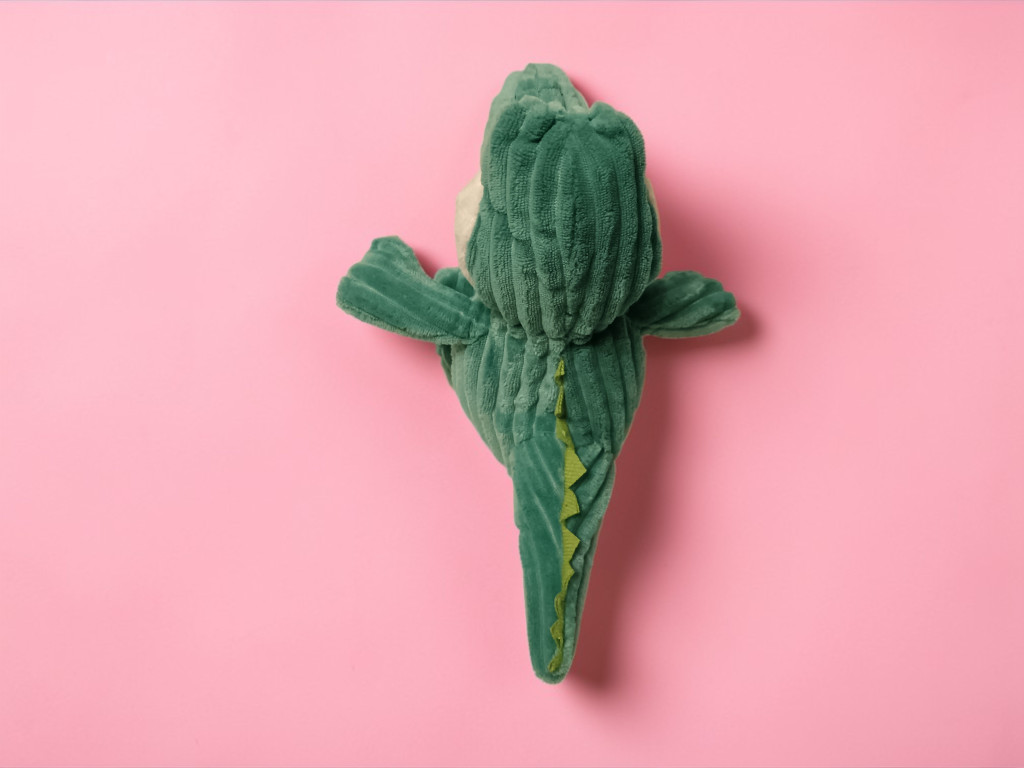Ez a barátságos, nagy szemű plüss krokodil első pillantásra belopja magát a gyerekek szívébe. Puha, bordázott tapintású anyaga különlegessé teszi, fehér pocakja és kedves arckifejezése pedig teljesen megszelídíti ezt a „vadállatot”. Oldalról és felülről nézve is részletgazdag kialakítású, hátán apró, zöld tüskesor fut végig.