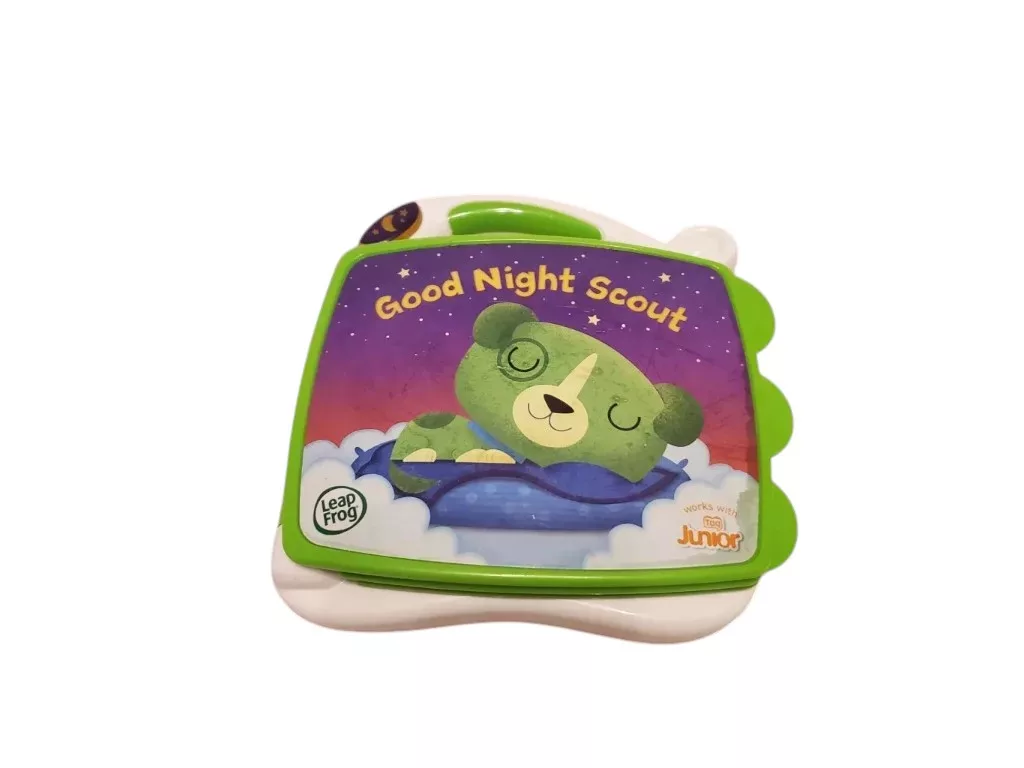 Ez a LeapFrog zenélő könyv már sok esti pillanat részese volt. Nem újszerű, nem hibátlan – használatban volt, és ez látszik is rajta. Pont ezért hiteles: egy olyan könyv, amelyet valóban lapoztak, gombokat nyomogattak rajta, és amely most készen áll arra, hogy újra része legyen az esti lecsendesedésnek.