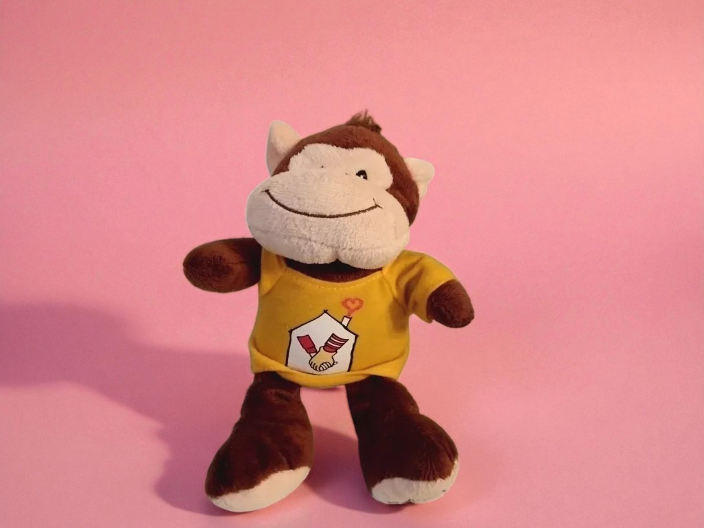 Van egy kismajom, aki mindig mosolyog – bármi történjék is! Ez az aranyos, barna-fehér plüssfigura már messziről jókedvet áraszt. Sárga pólóján egy barátságos embléma díszeleg, amely a kedvesség és az összetartozás üzenetét hordozza. Puha, selymes tapintású bundája és huncut tekintete miatt pillanatok alatt kedvencé válik minden gyerekszobában.