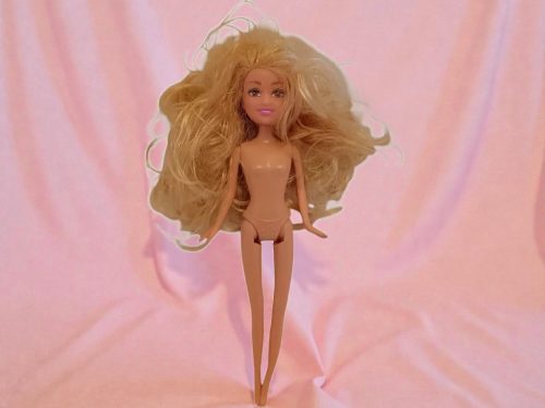 Ez a szőke divatbaba klasszikus arányú, 29 cm magas baba, mozgatható végtagokkal. Ruha nélkül érkezik, így ideális választás babaruhákhoz, öltöztetős játékhoz vagy saját készítésű ruhákhoz. A haja kócos, dús szőke hajkorona, ami egyértelműen jelzi, hogy már sokat volt kézben – ugyanakkor pont ez adja a karakterét és a természetességét.
